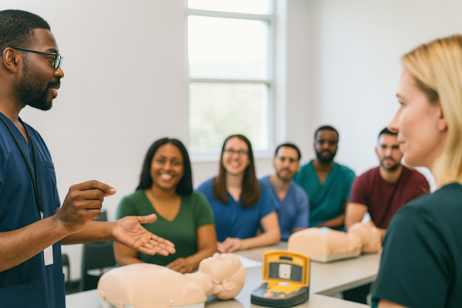Turn your clinical skills into impact. GEAR UP with CPR trains and mentors new instructors to teach BLS, ACLS, PALS and Heartsaver courses with confidence. Our instructor pathway covers course delivery, skills testing, scenario setup, and AHA paperwork—so you’re ready to lead life-saving classes in your community or workplace.